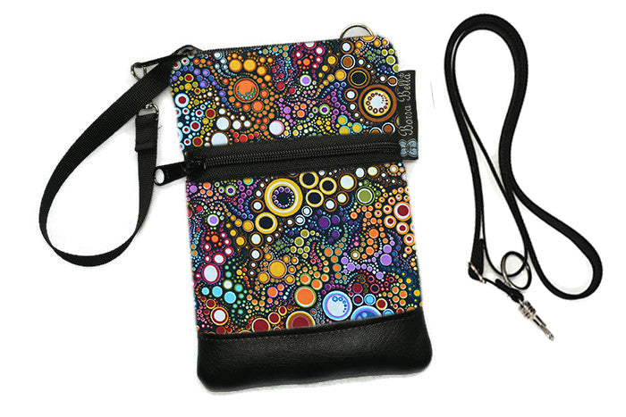 Short Zip Phone Bag - Wristlet Converts to Cross Body Purse - Happy Dot Fabric